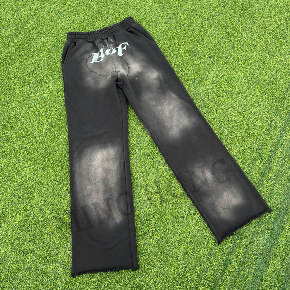 Pantalon de survêtement baggy design pour homme, style de rue, imprimé délavé vintage, sans cordon de serrage