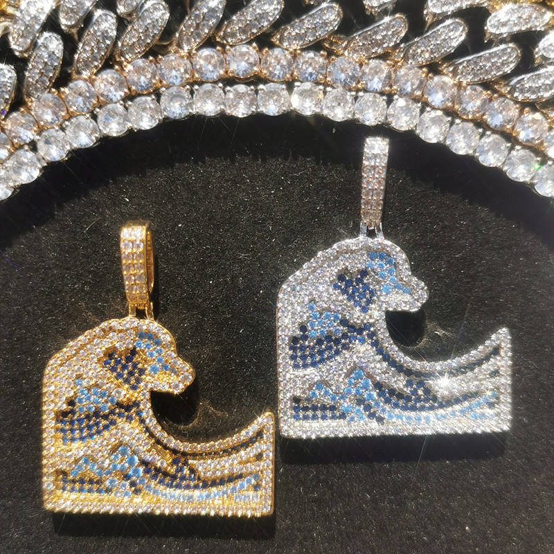 Mot-clé:Pulvérisation vague pendentif surf glace sur collier hip hop bijoux