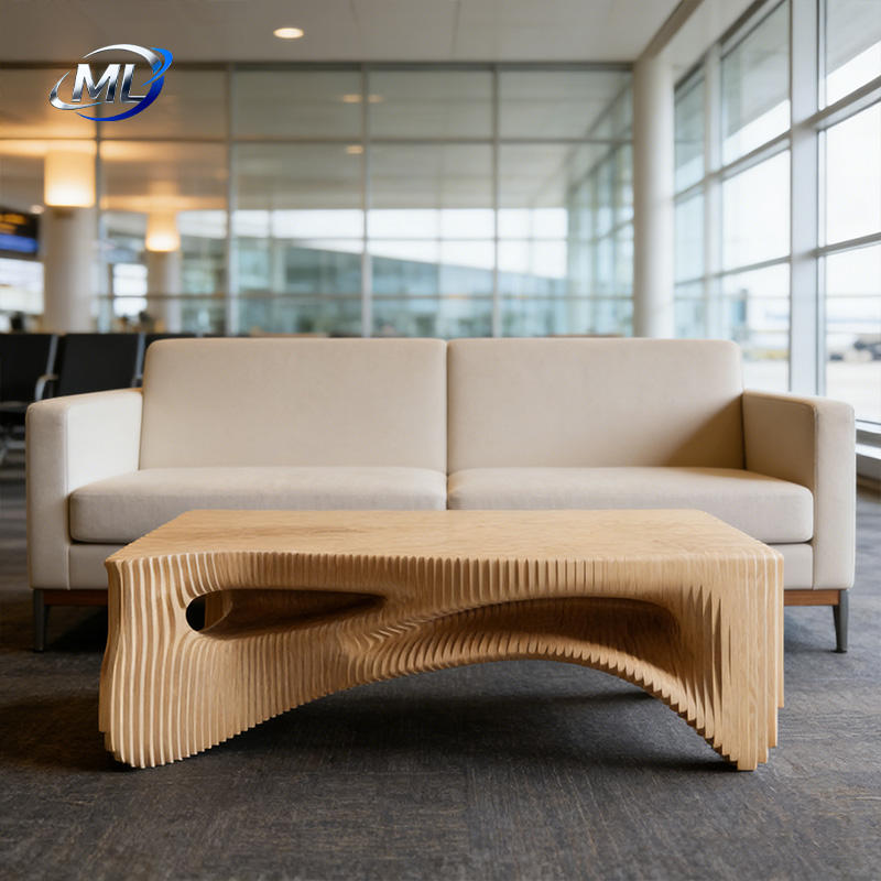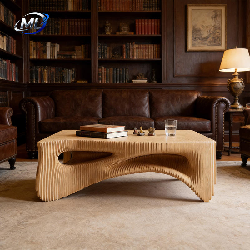 Table basse sculpturale moderne en bois massif incurvé, personnalisable avec plateau en verre, durable, pour salon, usage domestique ou hôtelier