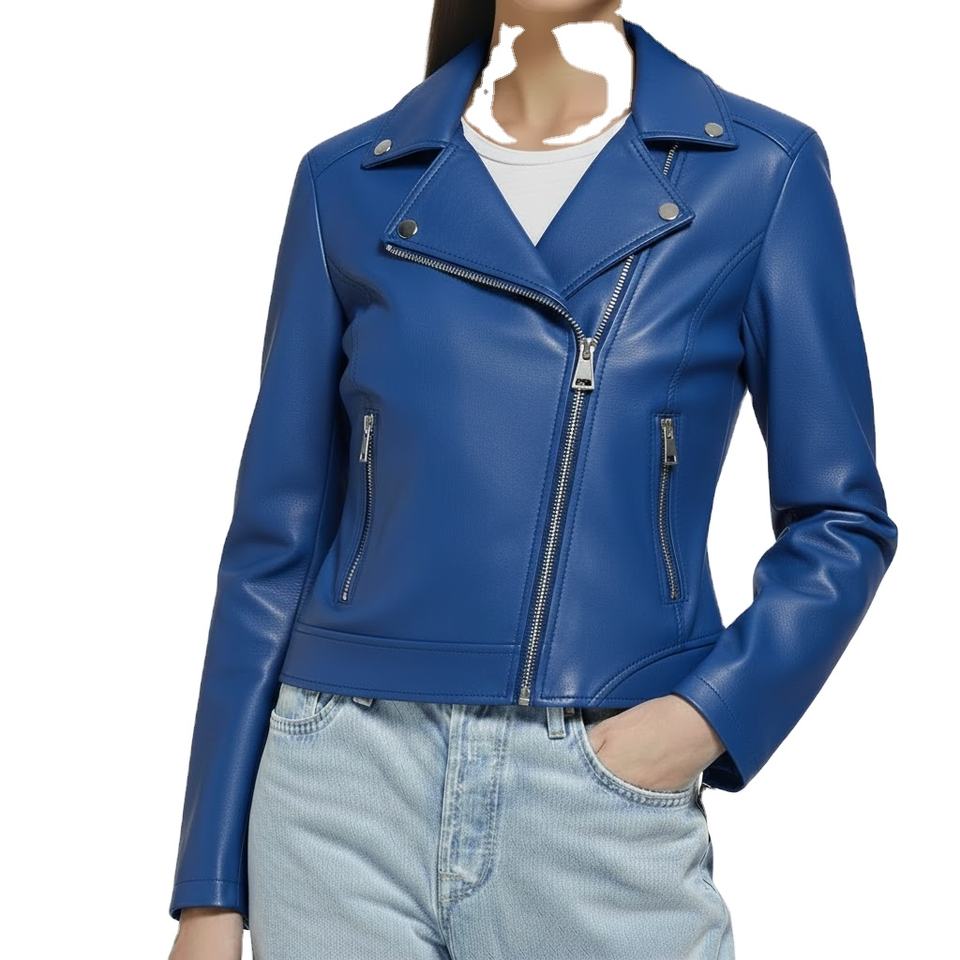 Veste d'hiver pour femme, style nouveau, en cuir véritable de qualité supérieure, col montant uni, fermeture éclair, taille luxueuse, sur mesure