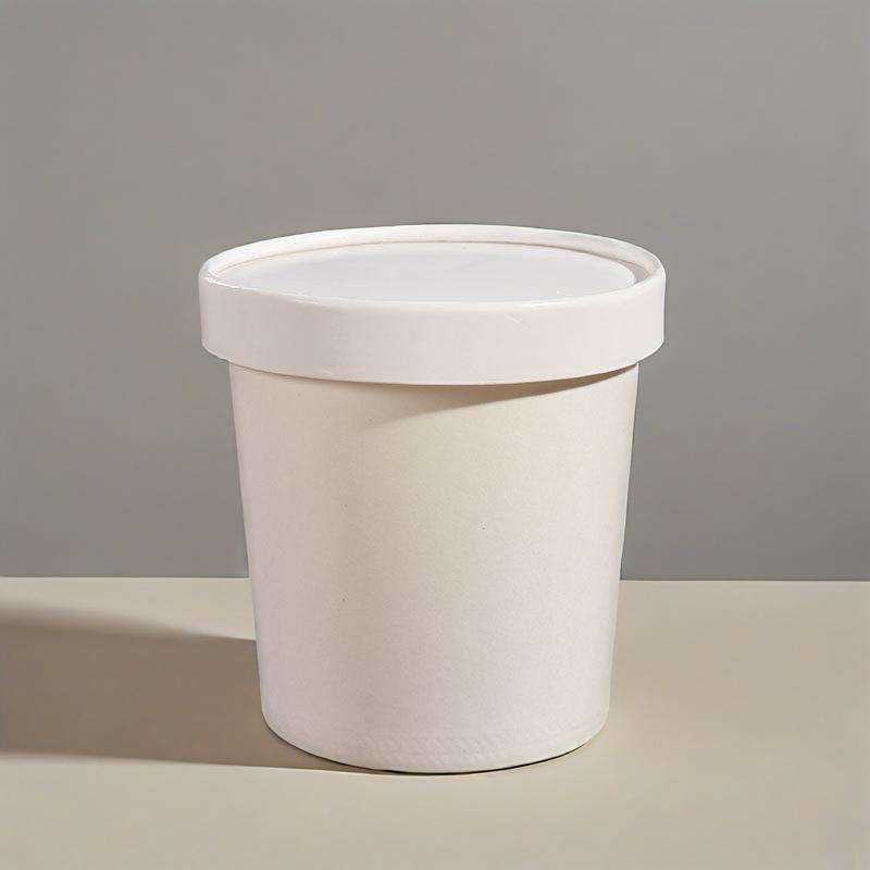 Contenant en carton kraft avec revêtement PLA pour nouilles, soupe, salade, ramen, avec couvercle, blanc