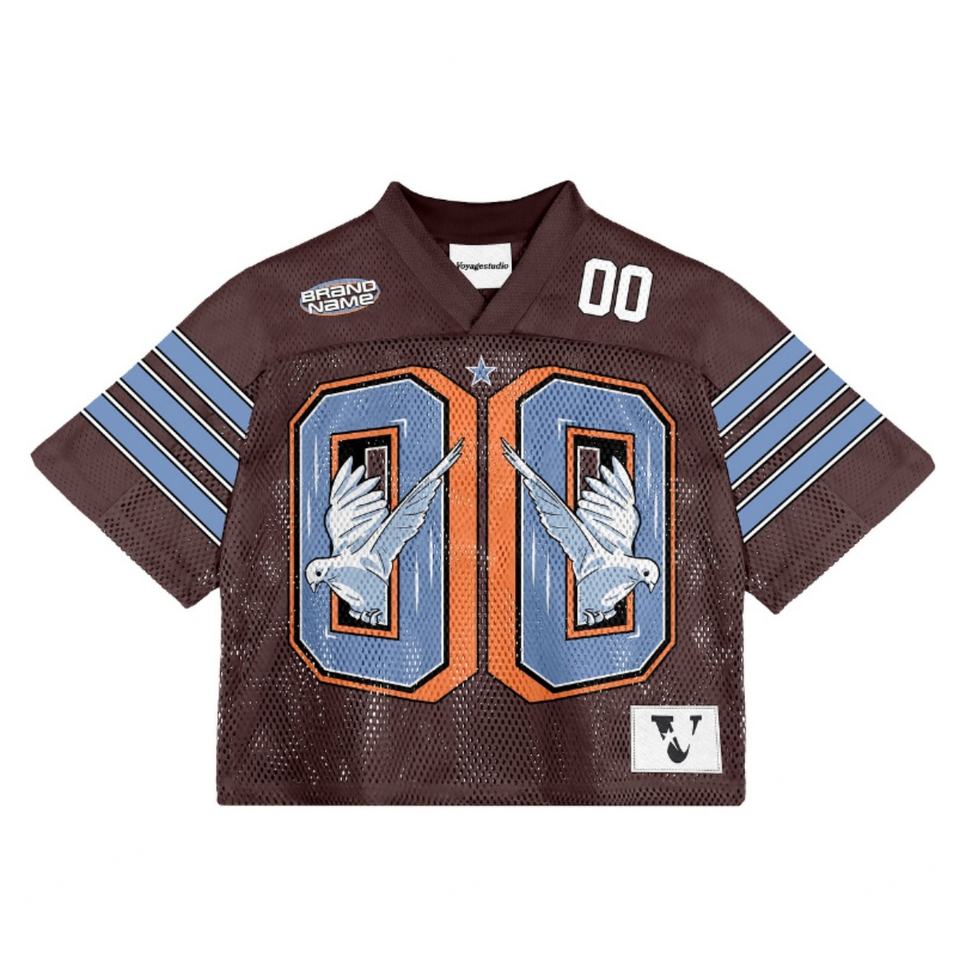 Maillot de football américain rétro rouge en polyester avec motifs de sublimation en maille, style crop top, pour club de sportswear