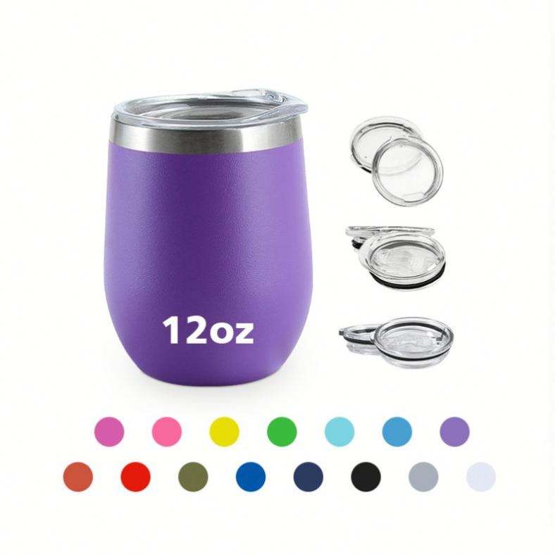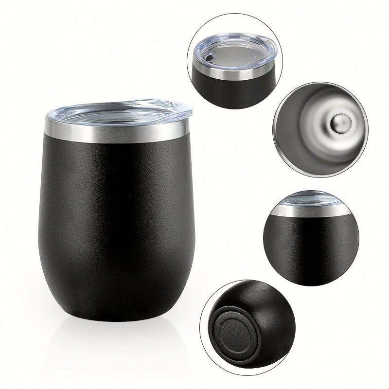 Gobelets à vin sans pied en acier inoxydable thermolaqué de 12 oz, à double paroi sous vide, pour café et vin, Design USA Warehouse