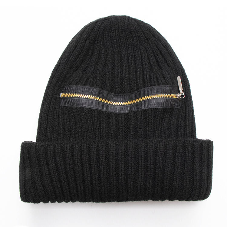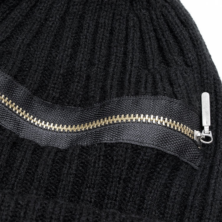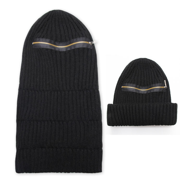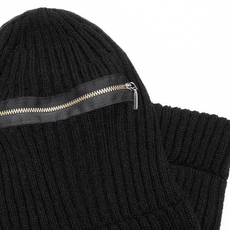 Couvre-visage noir en tricot avec fermeture éclair pour masque de ski, cagoule avec fermeture éclair, créez votre propre logo personnalisé