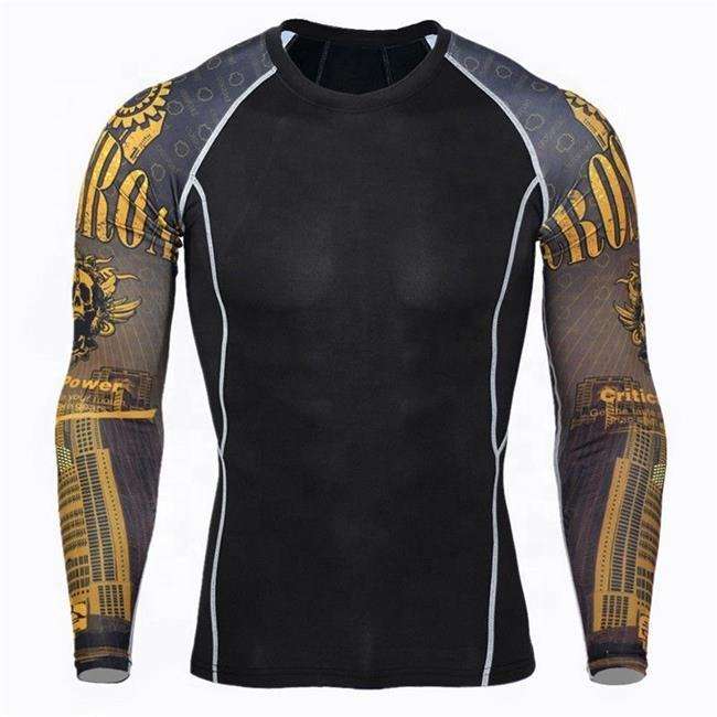 Concevez votre propre rashguard MMA à manches longues, t-shirt personnalisé imprimé en sérigraphie pour hommes, anti-UV, respirant, séchage rapide