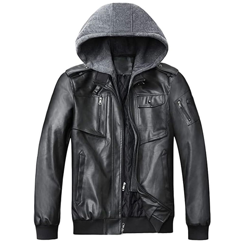 Concevez vos propres vestes en cuir à capuche, logo personnalisé, taille, vestes en cuir en gros, prix de gros, fermeture éclair, vestes en cuir de haute qualité pour hommes
