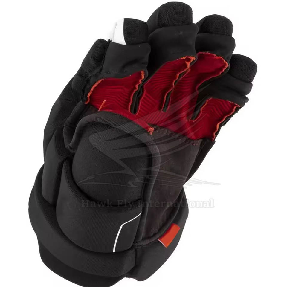 Concevez votre propre logo Gants de hockey sur glace de haute qualité à doigts entiers Respirants Légers Fermeture à boucle et crochet Polyester Fabriqués sur mesure