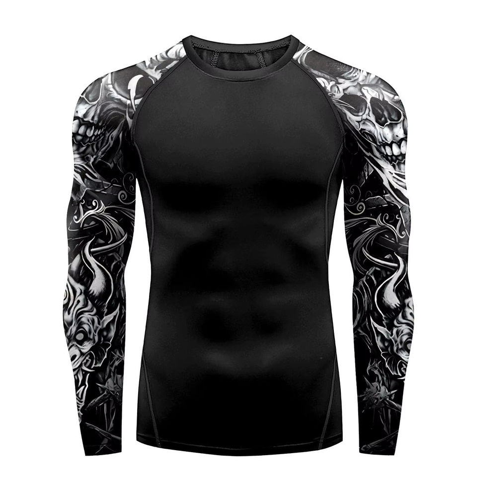 Créez votre propre Rash Guard MMA uni à manches longues, coupe ajustée, logo personnalisé, Rash Guard pour homme à col rond à prix avantageux, personnalisé