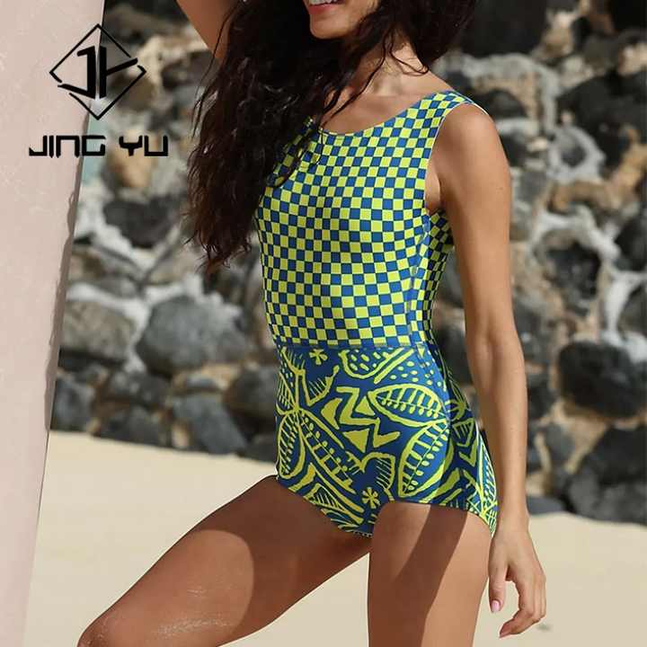 Combinaison de surf une pièce en polyester recyclé personnalisée, respirante, à col en V profond, dos nu, imprimée et conçue pour la protection solaire