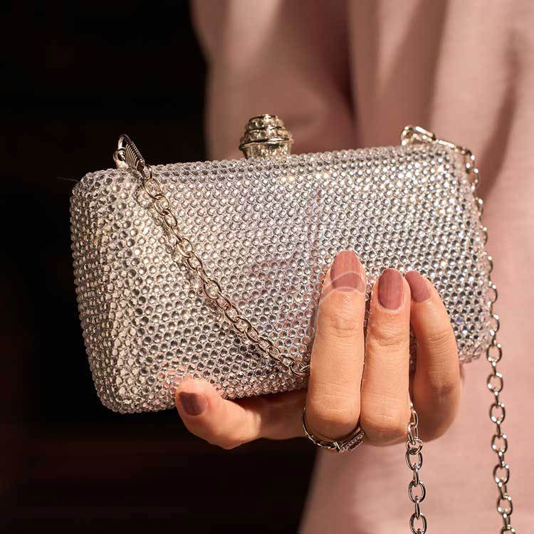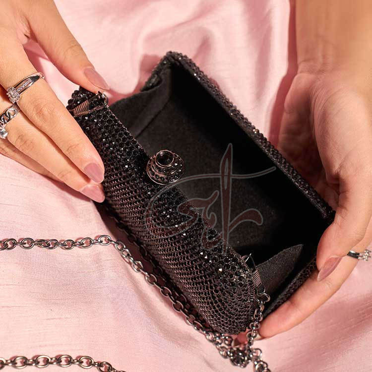 Pochette pour femmes conçue avec des strass, chaîne de luxe, portable, ajoute une touche de polyvalence, soirées et occasions spéciales