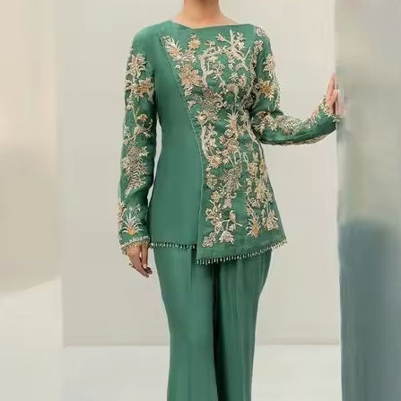 Designer 2024 belle robe de soirée haut bas Zari broderie perles de verre cristal Dabka travail dentelle/bouton caractéristiques diamant