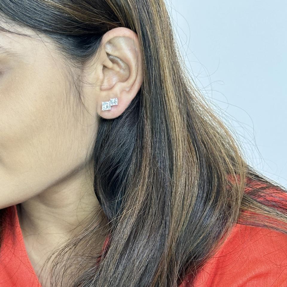 Boucles d'oreilles clous Toi et Moi en diamant de laboratoire taille princesse de 3,15 carats pour femmes, plaqué rhodium, or premium 14K/18K