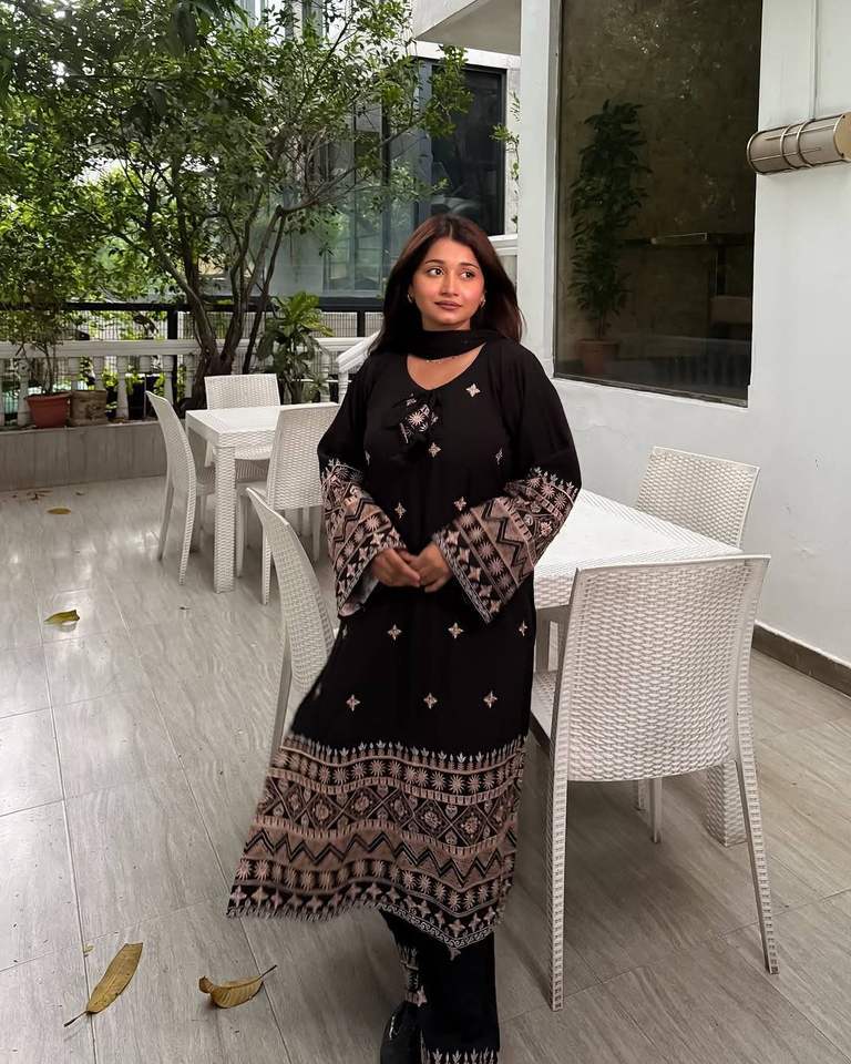 Dans le paquet:Kurti, plazzo et un dupatta entièrement cousus