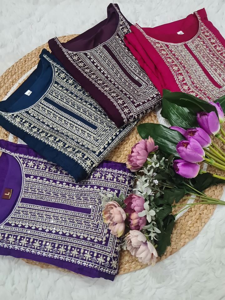 Designer 3 Piece Kurtis Set Pure Vichitra Silk with Elegant Embroidery and Sequence Work Stylish Ethnic Wear for Women