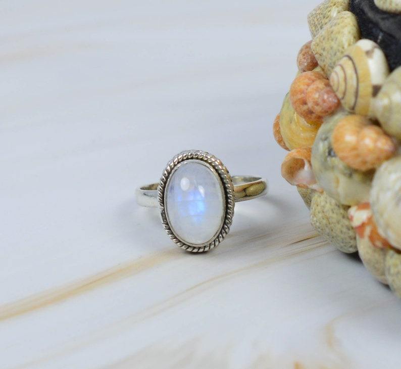 Bague en argent sterling 925 avec pierre précieuse, vente chaude, pierre de lune arc-en-ciel, bijoux faits à la main, coupe ovale, cadeau de mariage, fête, anniversaire
