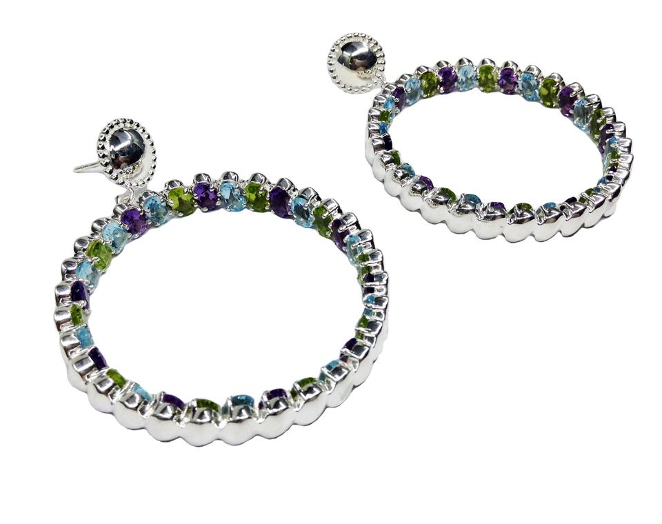 Boucles d'oreilles créoles pour femmes en argent sterling 925 avec pierres précieuses multicolores classiques élégantes et à la mode de style vintage