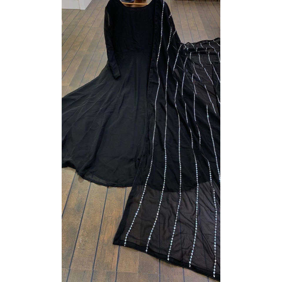 Robe Anarkali A-Line FB Designer avec magnifique dupatta et tissu en mousseline de soie transparente à superpositions, idéale pour les fêtes