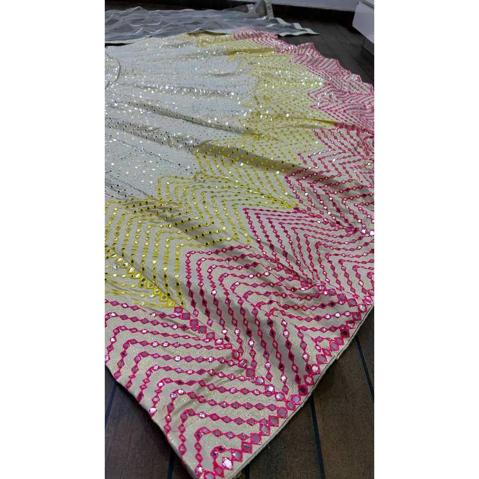 Lehenga Choli de créateur coupe trapèze pour soirée, avec crop top à taille naturelle, orné de miroirs en papier et de broderies multi-fils