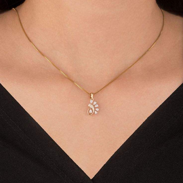 Pendentif de luxe en diamant motif paon abstrait en or rose – Collier de bijoux de luxe en diamant inspiré du motif éventail pavé et baguette