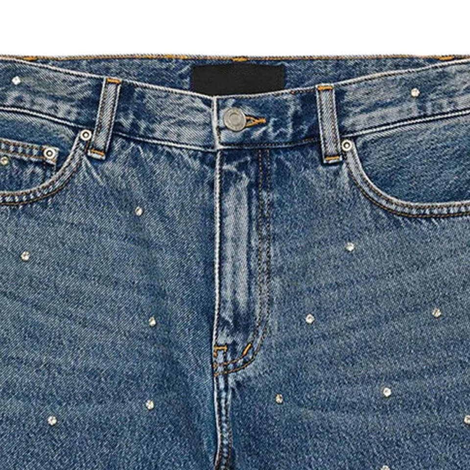 Shorts pour hommes en toile délavée style designer avec strass intégrés, cristaux de haute qualité, 100% coton, style urbain, été