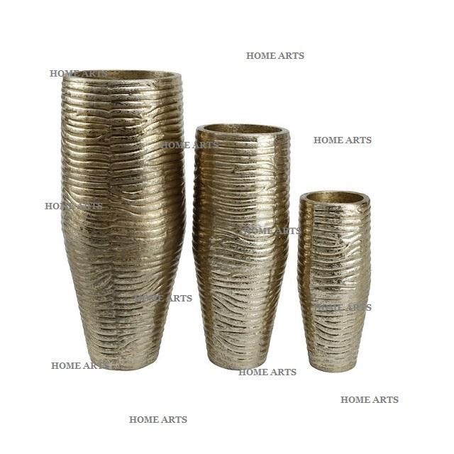Ensemble de 3 vases à fleurs en aluminium martelé de qualité supérieure, différentes tailles, vaisselle, vase à fleurs en provenance d'Inde