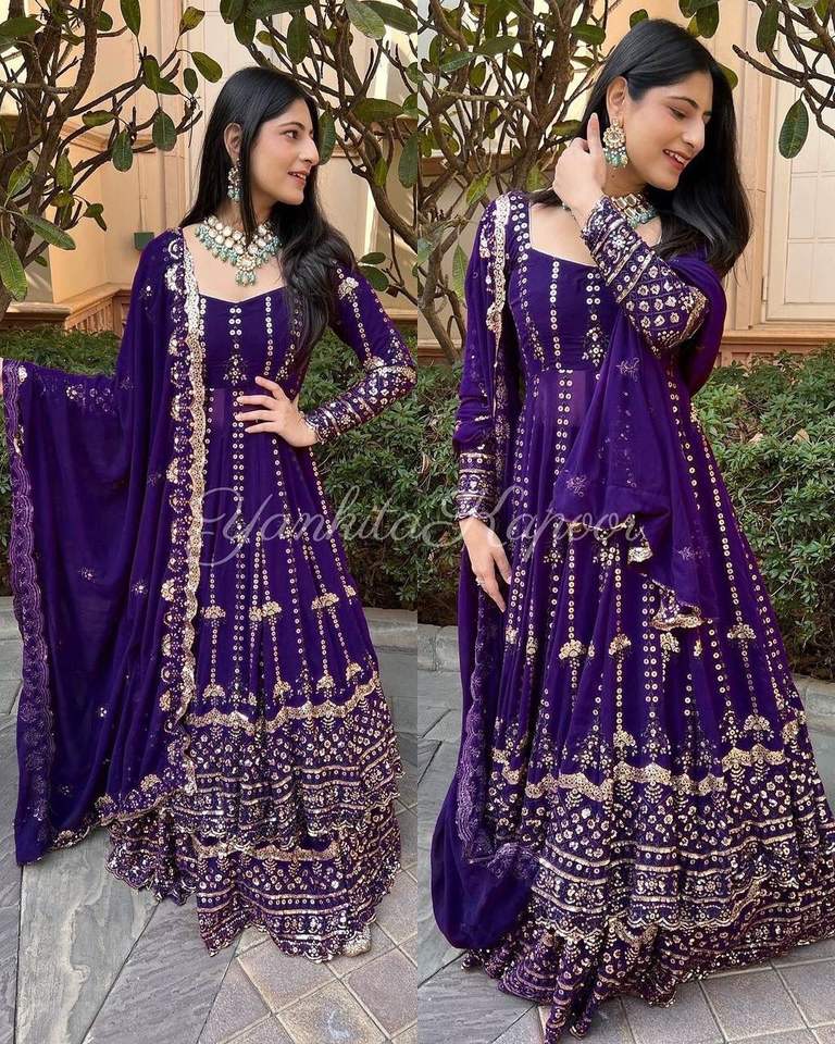 Nom du produit:Broderie de Georgette Broderie lourd Anarkali robe Sharara & Dupatta