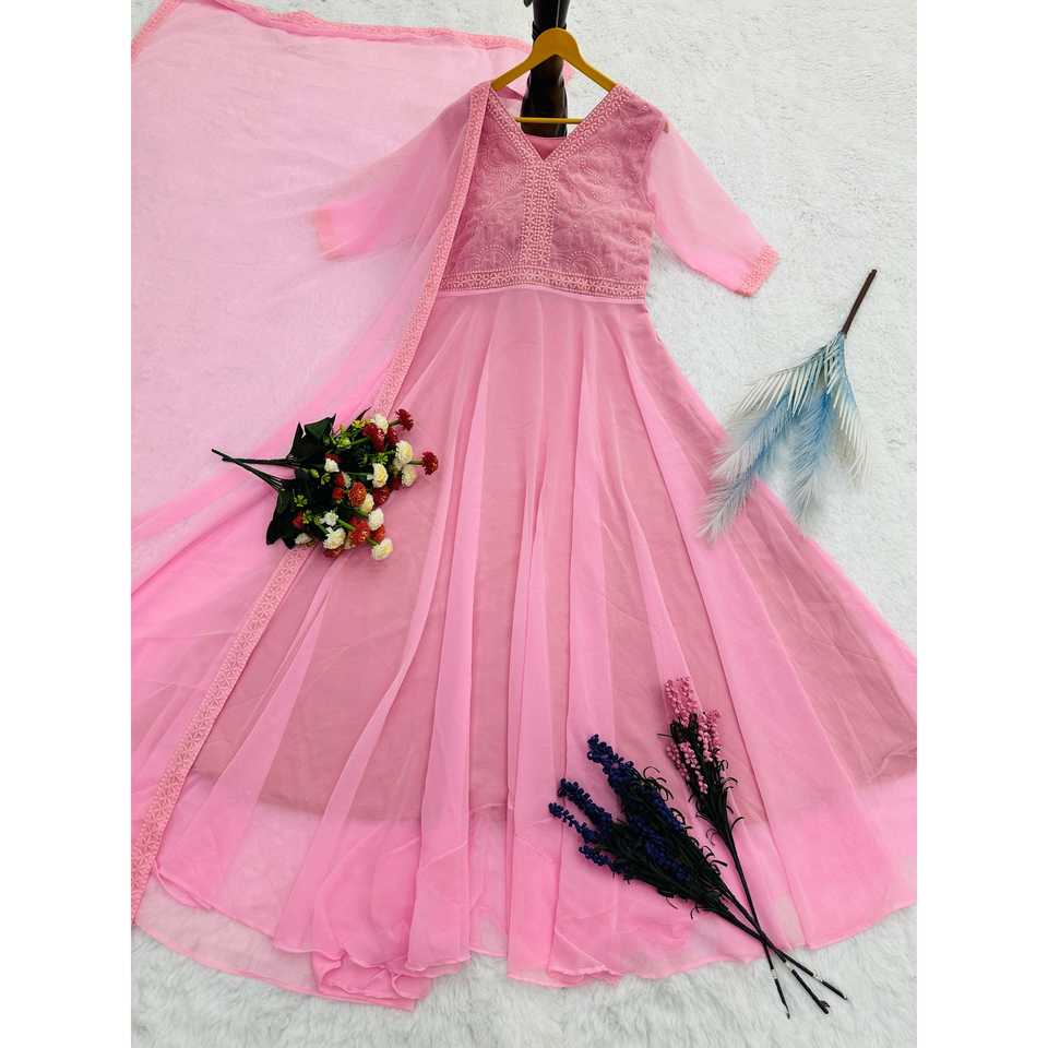 Robe de créateur Anarkali pour soirée Broderie Chikankari Travail Robes de soirée élégantes