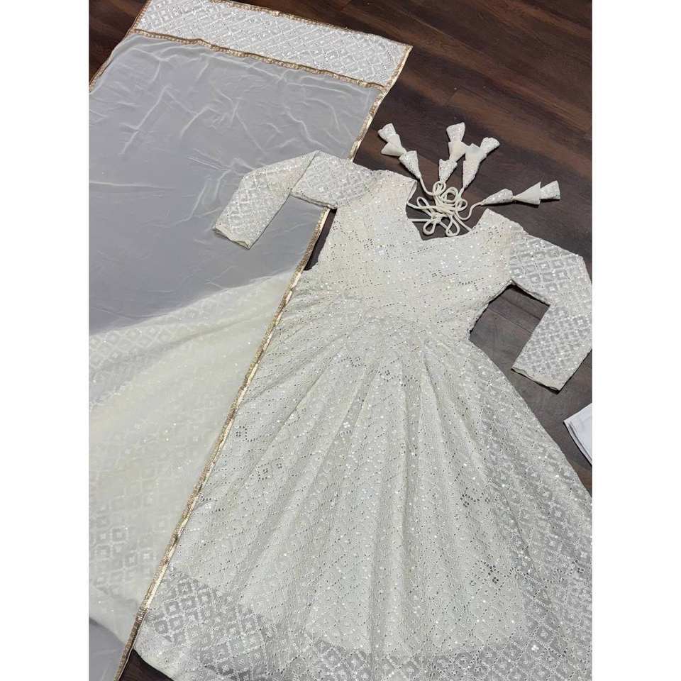 Ensemble de costume Anarkali de créateur pour les fêtes, vêtements indiens et pakistanais avec broderie au fil
