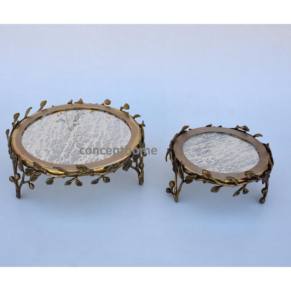 Plateau de service pour chocolat, design attrayant, haute qualité, plaqué or, luxueux, en métal et miroir.
