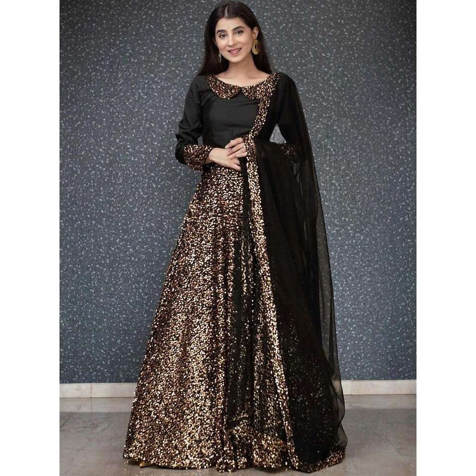 Designer Beautiful Black Sequin Velvet Lehenga Choli with Dupatta Other Ethnic Accessories