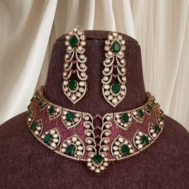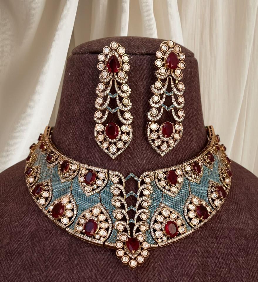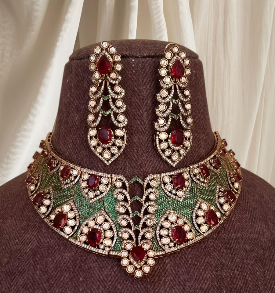 Ensemble de collier et boucles d'oreilles de haute qualité, plaqué or, avec pierres en moissanite, pour femmes, collection de vêtements de mariage