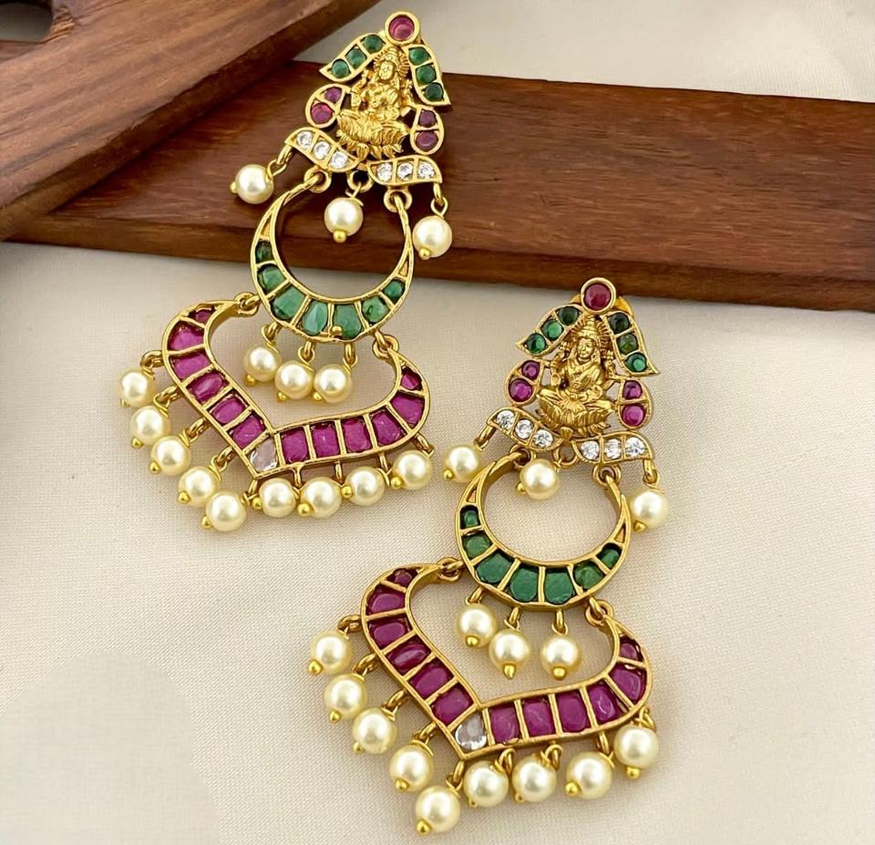 Boucles d'oreilles de qualité supérieure plaquées or, style traditionnel, ornées de pierres, pour mariage, festival, collection pour femmes et filles