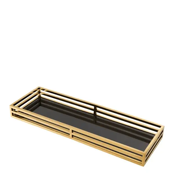 Plateau rectangulaire en métal noir et or de créateur, idéal pour les fêtes, les collations, les boissons, l'affichage décoratif et les cadeaux de l'Inde