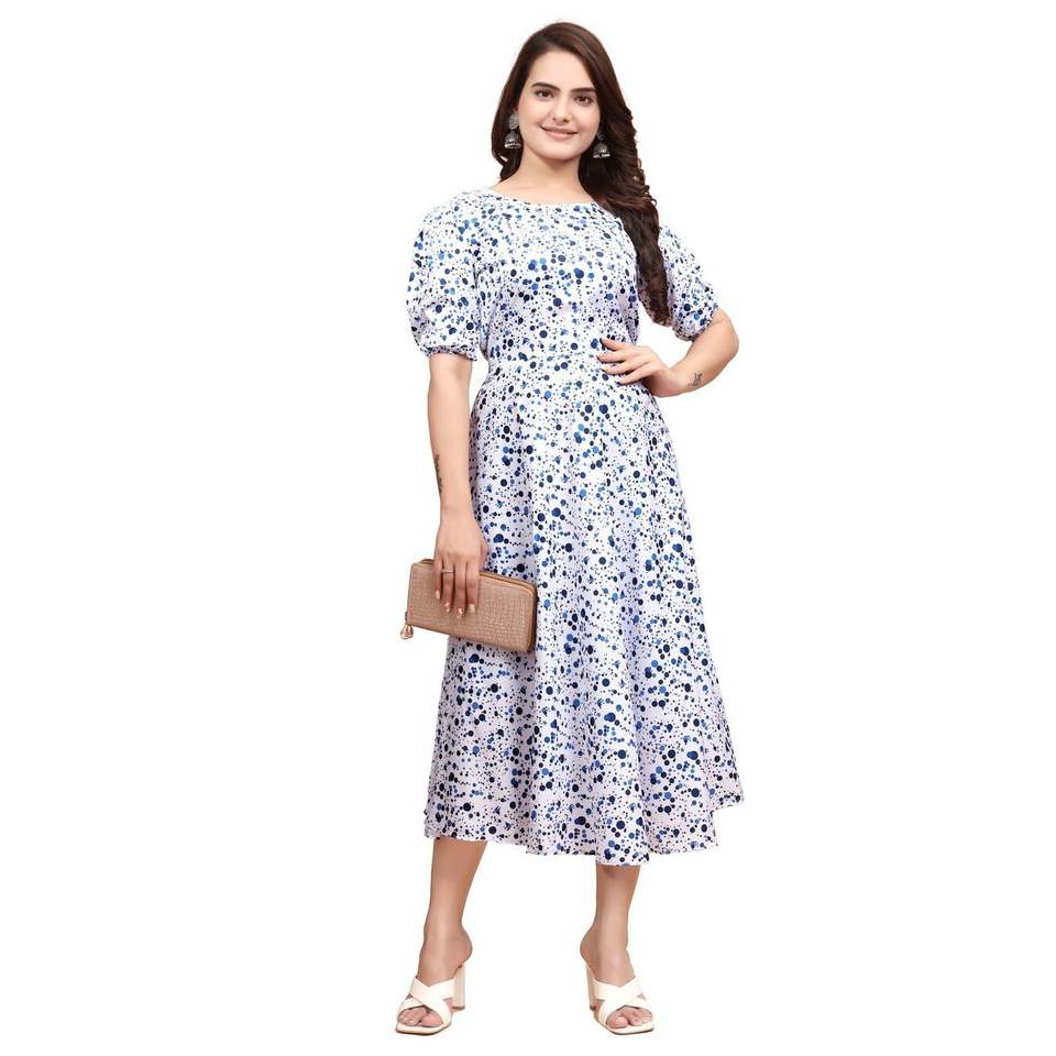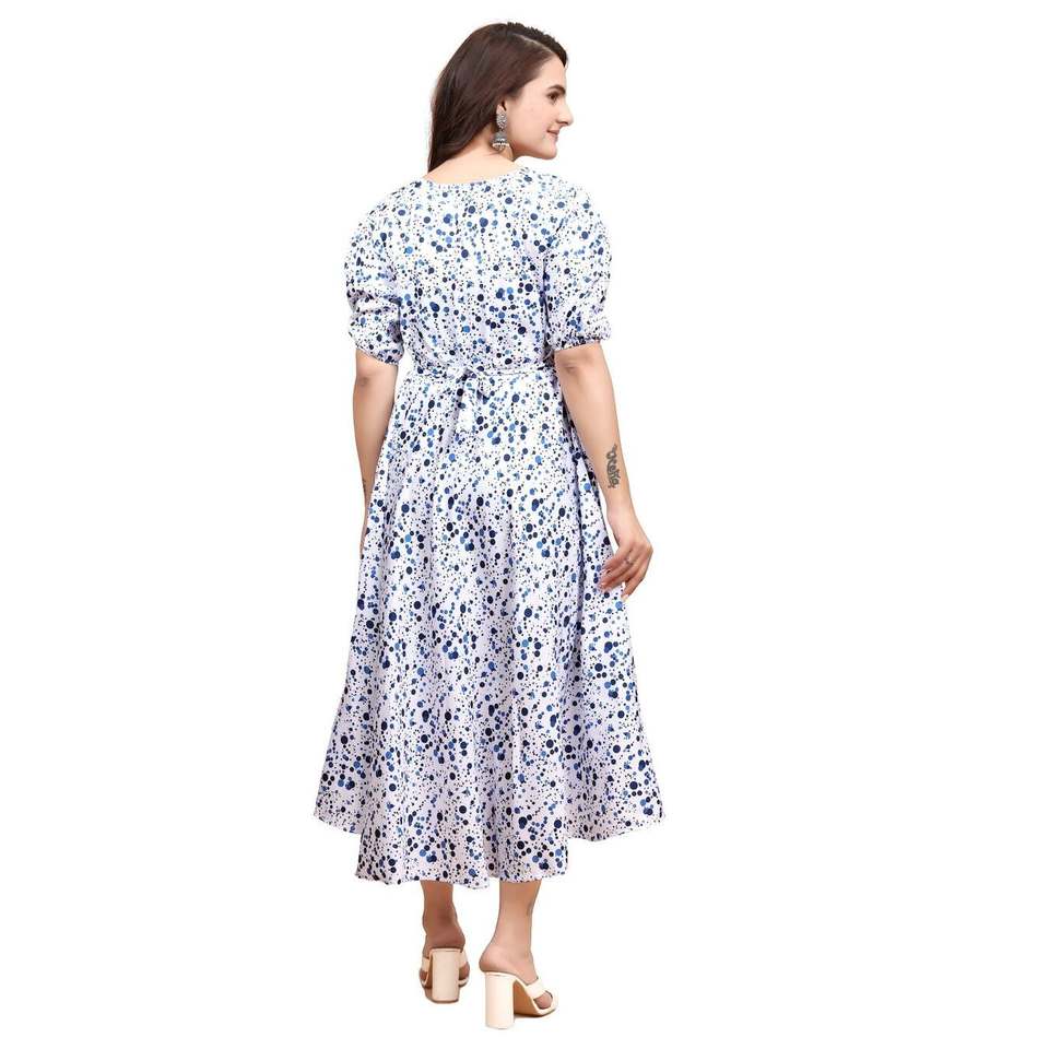 Designer Blue Bitter Silk Digital Print Work Dress Single Piece Indian Style