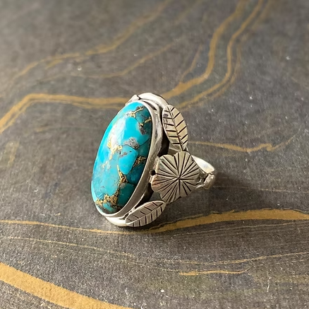 Bague en turquoise naturelle à motif plume (5,9 grammes) pour occasions spéciales, turquoise de forme ovale