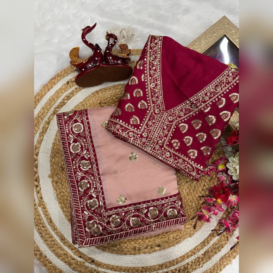 Sari en soie de style Bollywood avec broderie et chemisier, pour les fêtes, les mariages, les occasions spéciales, en gros