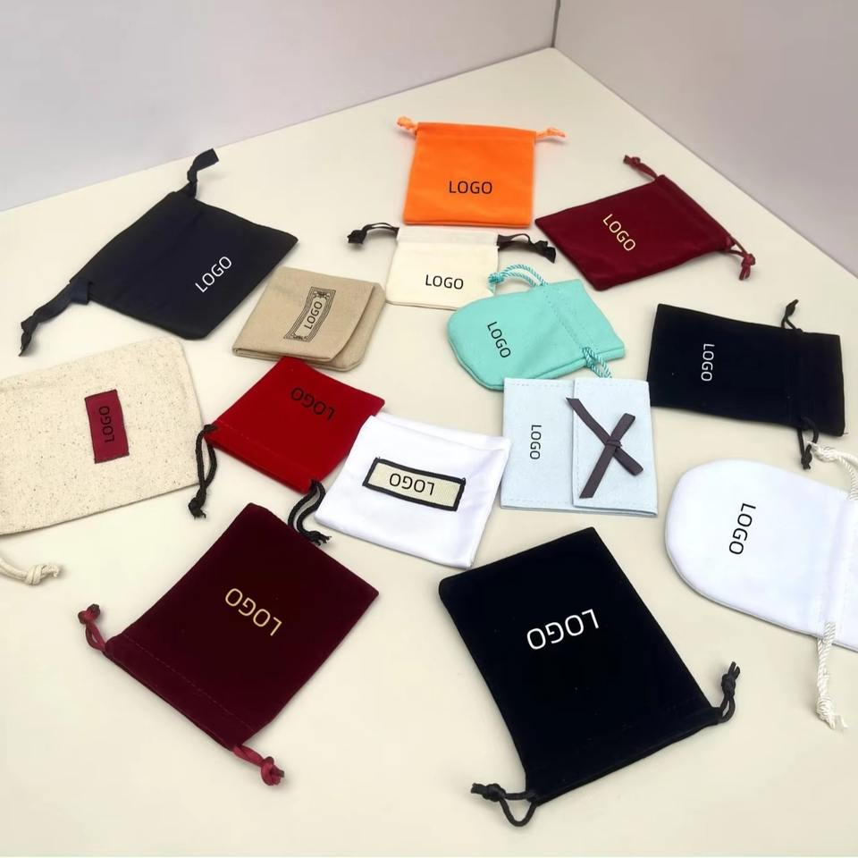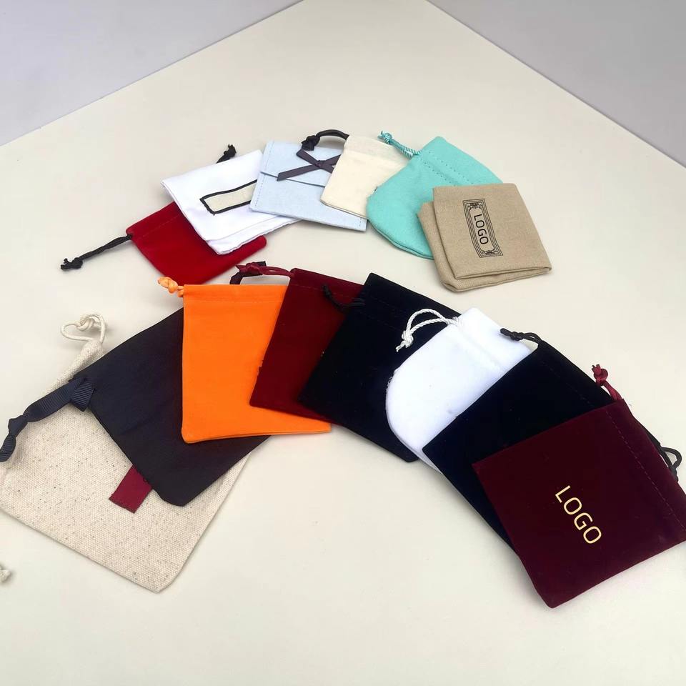Boîte cadeau de bijoux de marque de créateur avec logo personnalisé petit sac en tissu avec cordon en coton biologique Normcore/minimaliste toutes saisons vente en gros