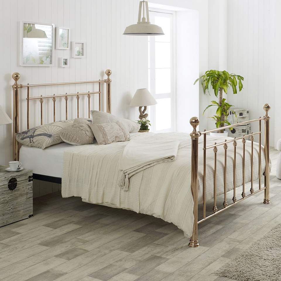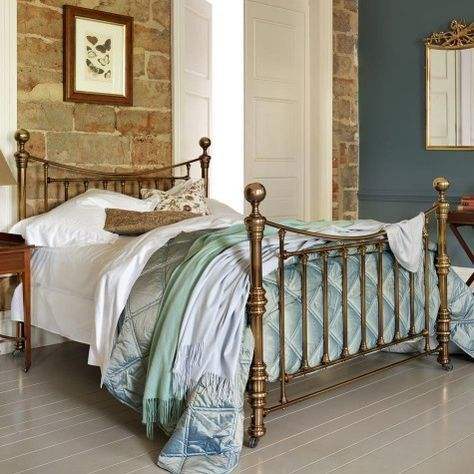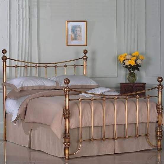Cadre de lit en laiton design avec motifs traditionnels rehaussant le décor et l'ambiance de la chambre à coucher
