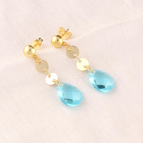 Boucles d'oreilles briolette coupé bleu, quartz, en forme de perle, laiton plaqué or, boucles d'oreilles goutte, pendentif, chaîne, bijoux