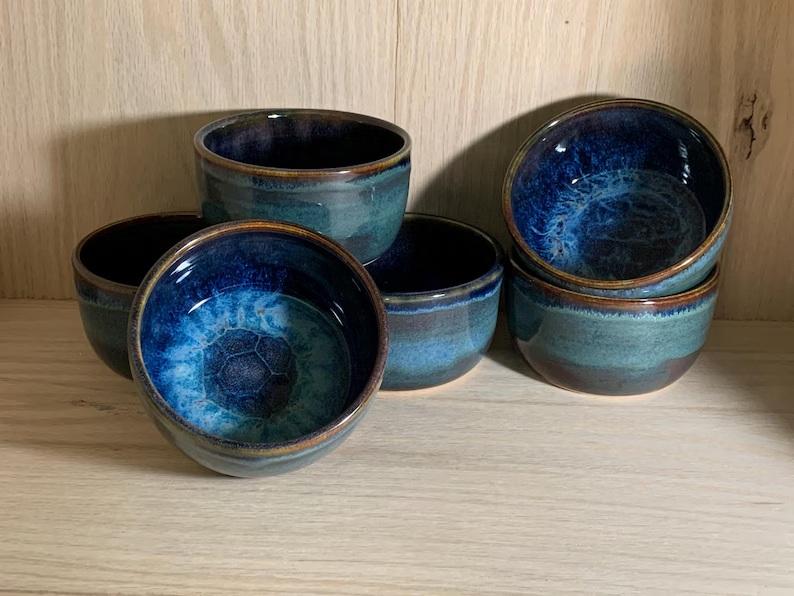 Bol en céramique design, glaçure réactive bleue éblouissante, empilable, gain de place, durable, alimentaire, idéal pour cuisine moderne