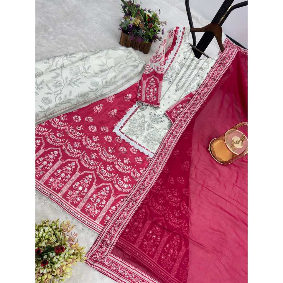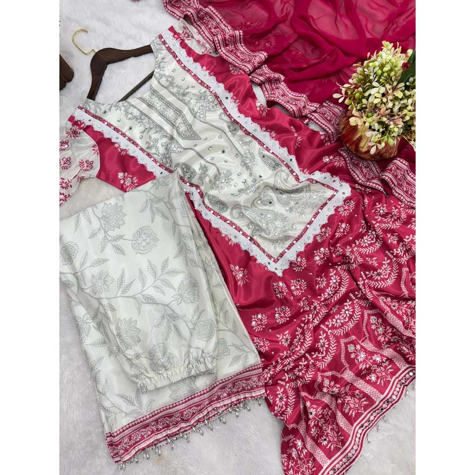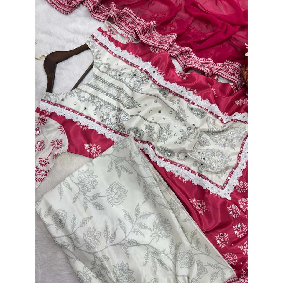 Ensemble de soirée en mousseline de soie de créateur : haut, pantalon palazzo et dupatta pour occasions spéciales