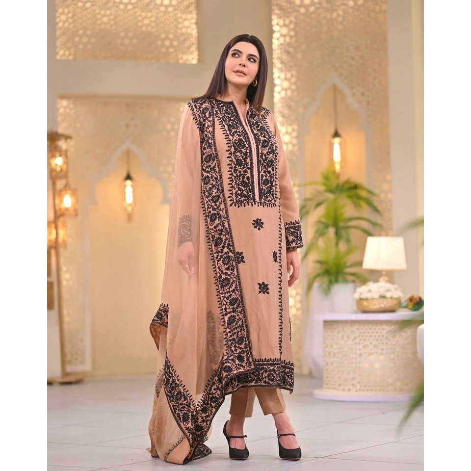 Ensemble haut, bas et dupatta en mousseline de soie de créateur avec broderie élégante