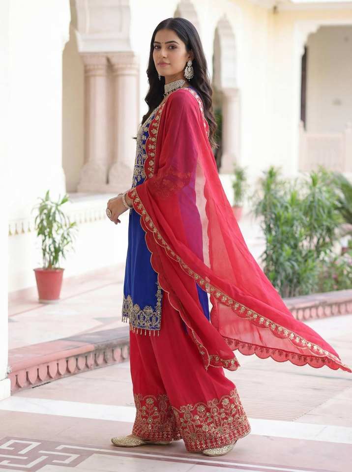 Ensemble Kurti en soie Chinon de créateur avec broderie lourde en sequins