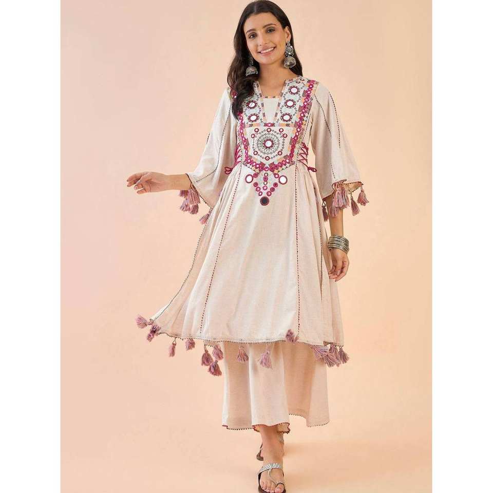 Ensemble coordonné de créateur avec broderie de sequins et travail de miroir véritable, taille XS