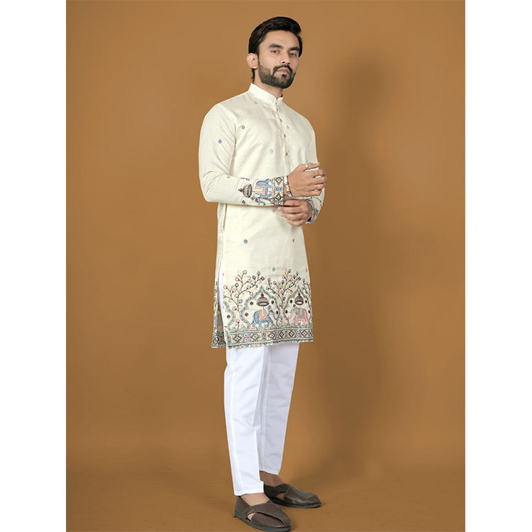 Collection de créateurs de kurta en soie royale classique et pyjama en coton de qualité supérieure avec broderie multi-fils à prix bas