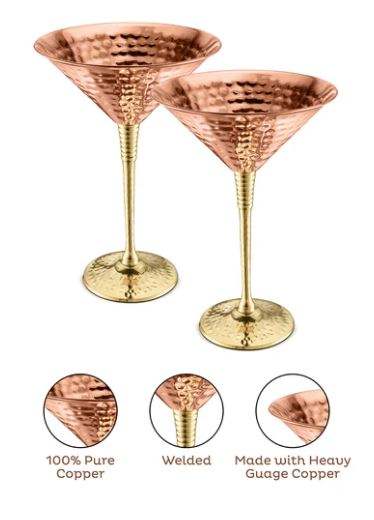 Verre à cocktail Martini en cuivre design avec paille – Élégant verre à pied pour bar, idéal pour l'hôtellerie, les boissons et les fêtes