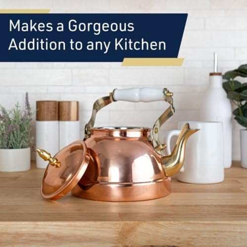 Théière en cuivre design, finition mate avec poignée, aspect vintage fait main, pour chauffer l'eau en cuisine et comme article cadeau
