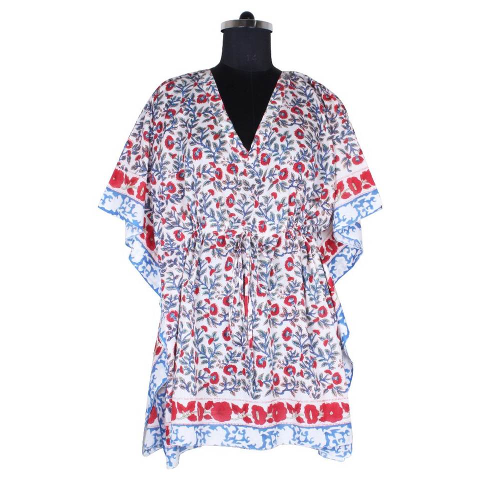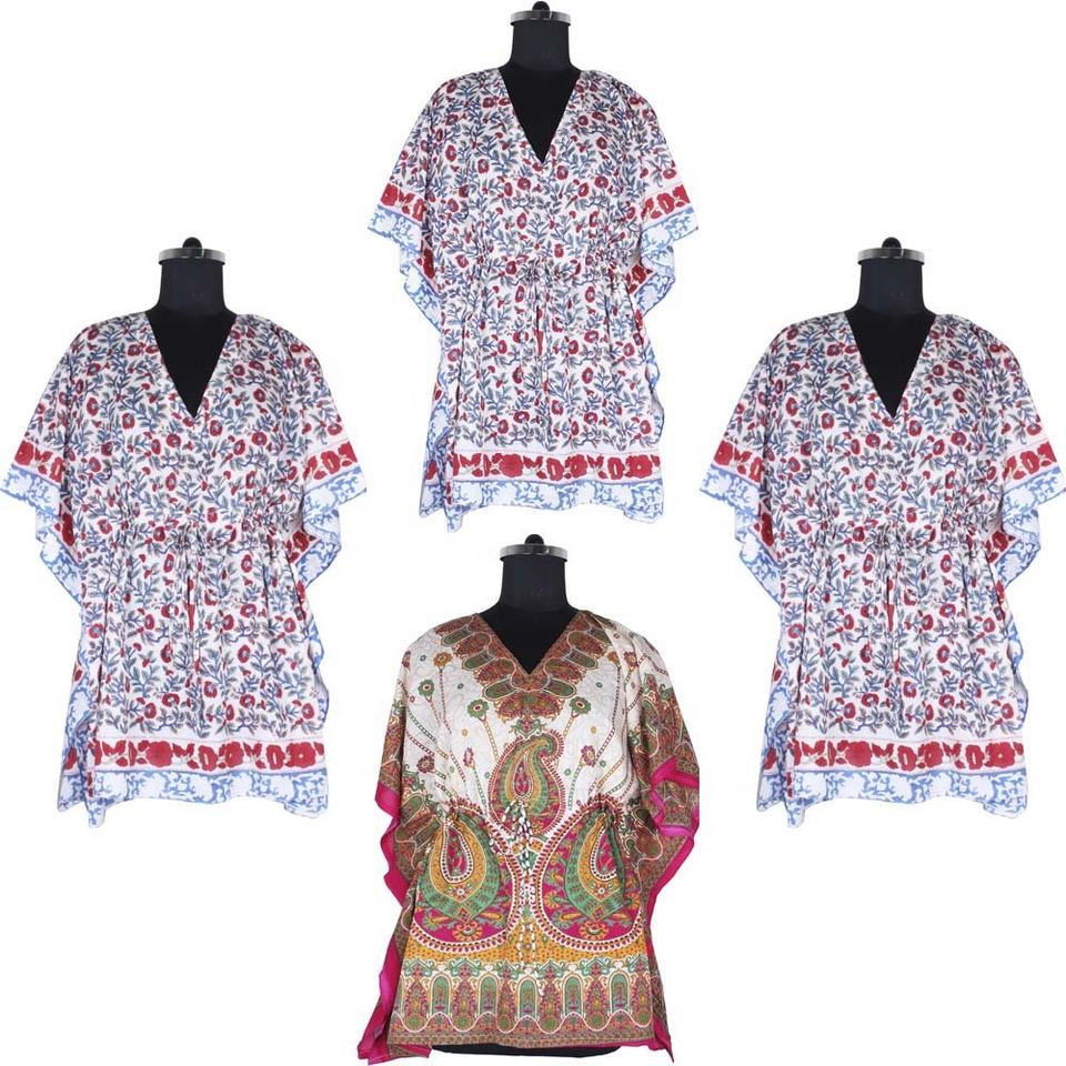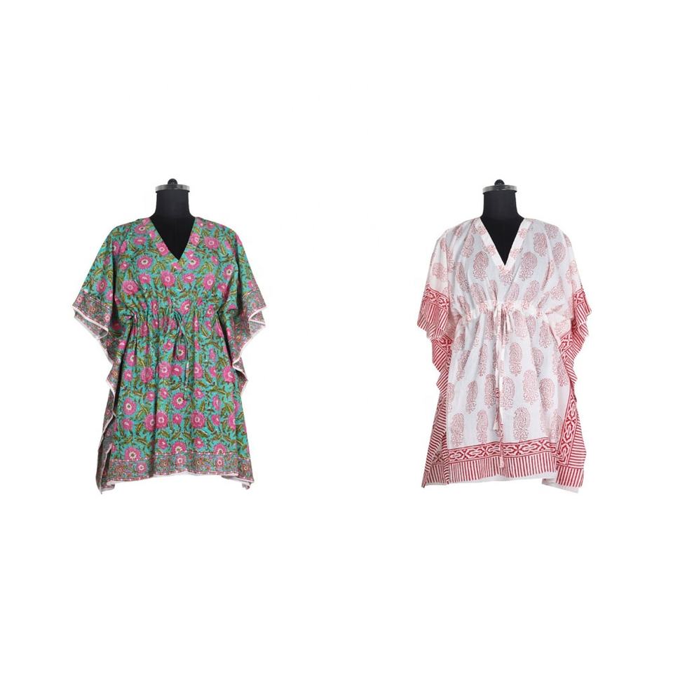 Robe caftan en coton de créateur grande taille col en V sans manches manches chauve-souris longueur genou avec décoration à motifs pour robes pour adultes