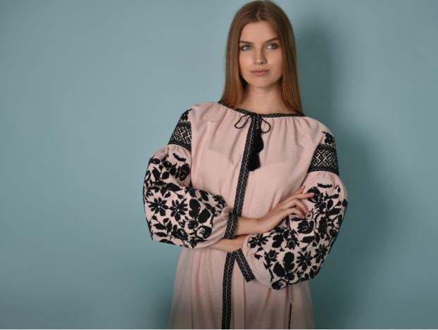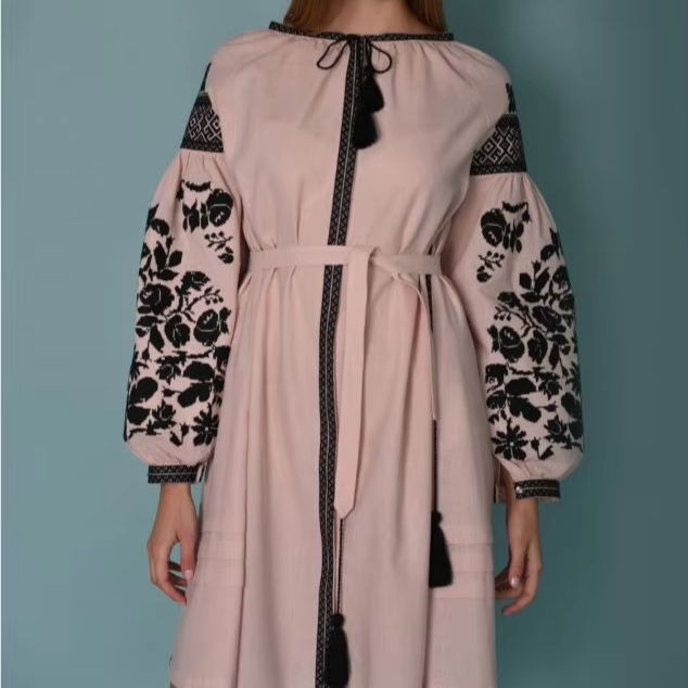Designer Cotton Ukrainian Wedding Party Dress Embroidery Floor-Length Puff Sleeves Linen Plus Size Washable Clothing Vacations