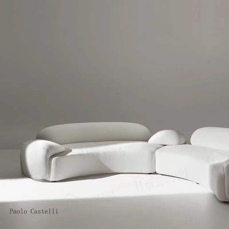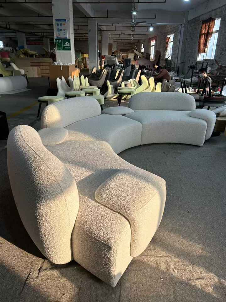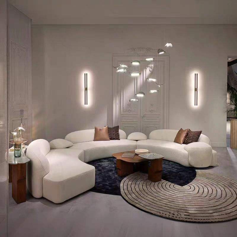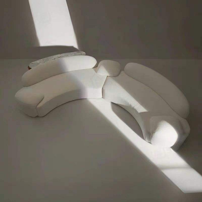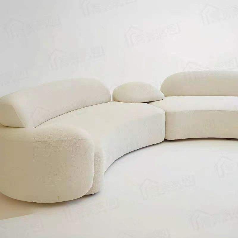 Canapé Courbé en Tissu Crème Design - Salon Moderne Hôtel Familial - Combinaison Simple et Créative